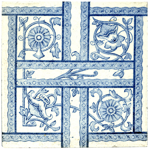 TCC Database Pattern #17857. The tile back has a printed Rd. No. 15668 that represents 1884, the date the pattern was registered. It may be a product of the Marsden Tile Co.